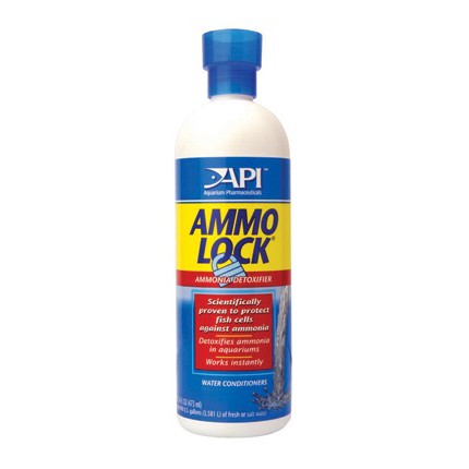 Directions: Use the API Dosing Cap on the Bottle. Add 5ml per 10 U.S. gallons of aquarium water. Continue to add AMMO-LOCK every 2 days until ammonia is not detected. If, after 7 days, ammonia is still present, perform a partial water change, service your biological filter and reduce feeding.