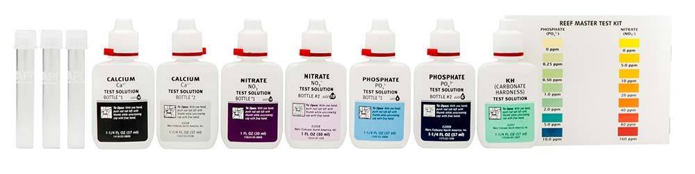 The API Reef Master Test Kit tests 4 key parameters – calcium, carbonate hardness, phosphate, and nitrate – to keep reef inhabitants healthy. Testing is fast, easy, and accurate. The kit includes 4 glass test tubes with snap-tight caps, a holding tub, and a step-by-step instructional booklet with a color chart that provides information on how to correct unsafe water conditions.
